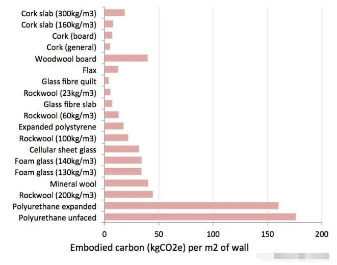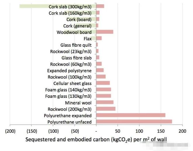 最后的结果还是表明,化学建材保温材料,岩棉、矿棉这类材料的碳排放还是居高的。而软木保温材料却成了最低碳的保温材料。